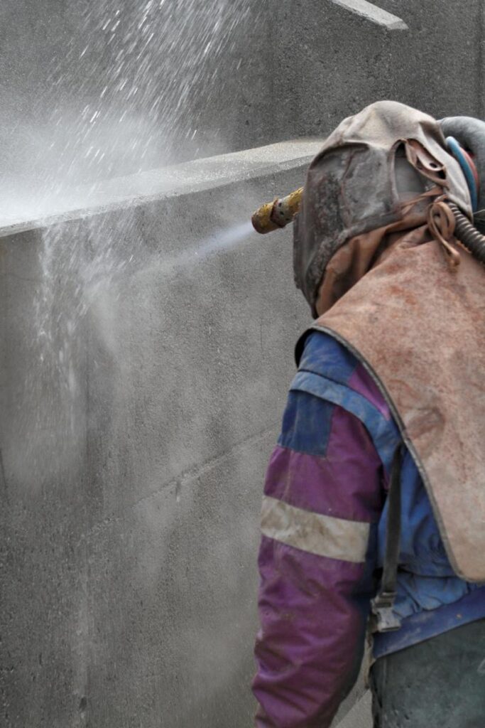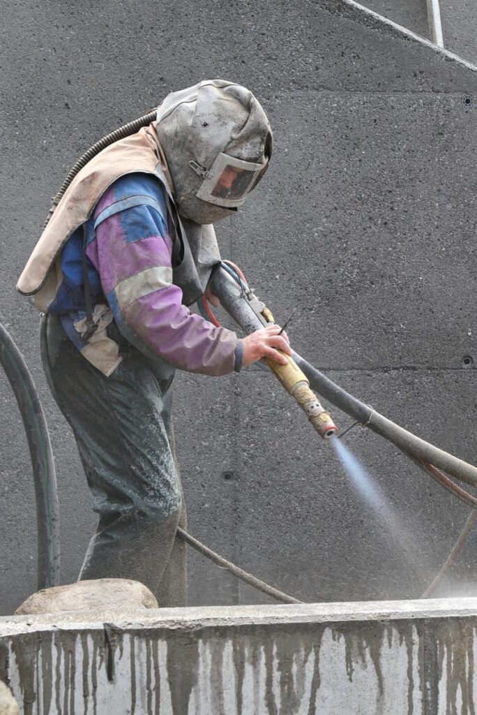- Ich bearbeite Beton bei Schalungsunebenheiten, Verunreinigungen und Zementschlämme durch Reinigen und Aufrauen.